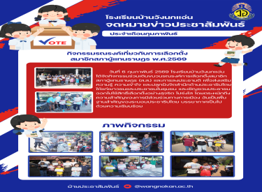 วันศุกร์ที่ 9 มกราคม 2569 โรงเรียนบ้านวังนกแอ่น นำโดยนายมนตรี ชัยชราแสง ผู้อำนวยการโรงเรียน พร้อมด้วยคณะครูและบุคลากรทางการศึกษา ชาวบ้านบ้านวังนกแอ่น ร่วมกันจัดกิจกรรมวันเด็กแห่งชาติ ประจำปี 2569 โดยนายมนตรี ชัยชราแสง เป็นประธานในพิธี กล่าวเปิดงานและอ่าน