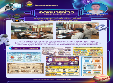 วันที่ 2 มีนาคม พ.ศ. 2569 โรงเรียนบ้านวังนกแอ่น นำโดย นายมนตรี ชัยชราแสง ผู้อำนวยการโรงเรียนบ้านวังนกแอ่น ได้จัดโครงการอบรมขยายผลเพื่อส่งเสริมการเรียนรู้ด้วยเทคโนโลยีปัญญาประดิษฐ์ (AI) โดยมีการปฏิบัติจริงในหัวข้อสำคัญอย่างมีประสิทธิภาพ